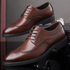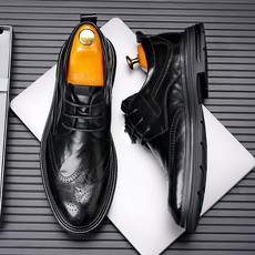 仟岚 新款男士商务正装皮鞋时尚英伦布洛克